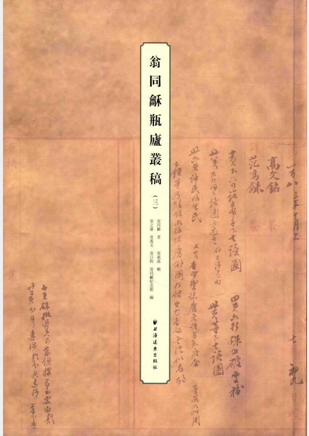 《翁同龢瓶庐丛稿》,翁万戈、翁以钧、翁同龢纪念馆编著,上海远东出版社2014年8月出版发行。全书共五册,由两部《瓶庐丛稿》合璧而成:一是1935年商务印书馆出版的《瓶庐丛稿》(十册);二是解放后翁同龢侄曾孙翁之憙捐给北京图书馆(即今天的国家图书馆)的翁同龢手稿(也称《瓶庐丛稿》)。内容涵盖了翁氏所记录有关晚清历史、官职、外交、司法、金融、中医药、科举考试、皇家档案、地方志、家族史料等各种资料,具有重要的历史价值和艺术价值。