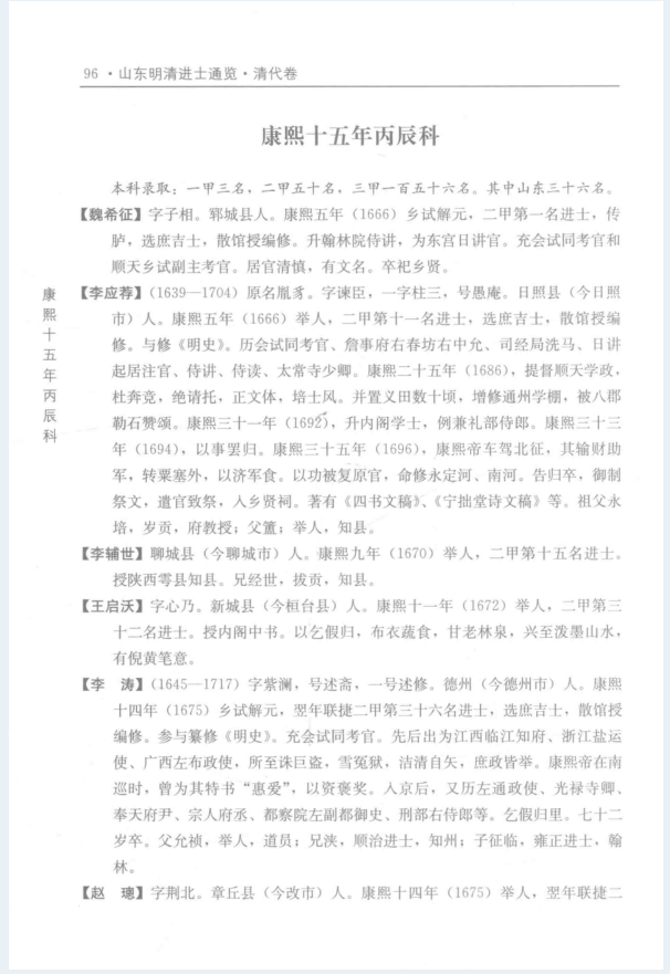 本书系统梳理了山东明代、清代两朝进士的史料性简况,按照时间顺序记叙、整理了两朝进士的传略性事迹,整体体现了山东各科所取进士数量、甲第名次以及重要事迹。全书分为明代卷和清代卷两代,是检索明、清两代进士传略性史料的工具书。