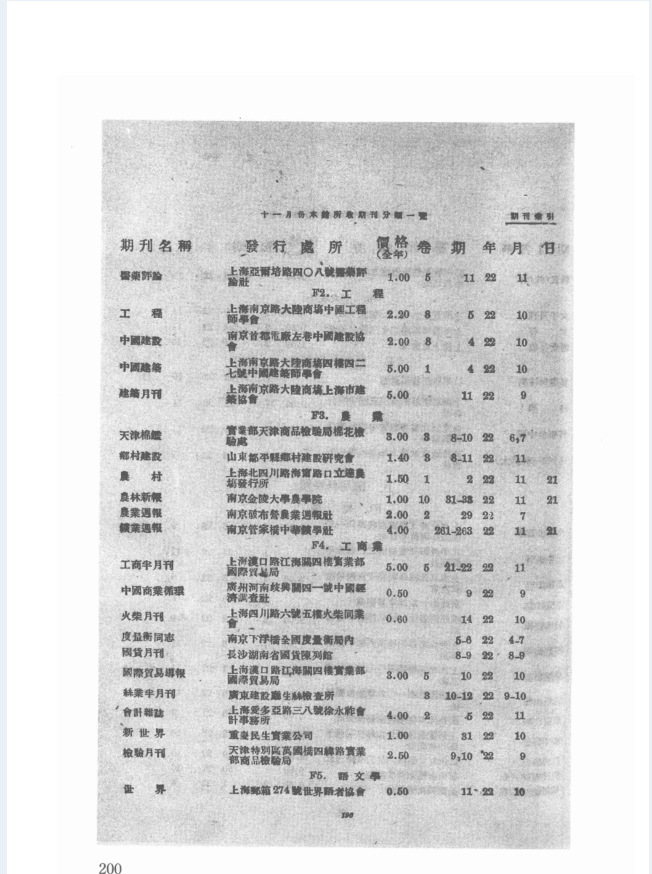 《民国时期期刊索引》全十八册,2013年1月由国家图书馆出版社出版。该书名为《民国时期期刊索引》,实际只是中山文化教育馆编的《期刊索引》(1933.11—1937.7)。《期刊索引》为月刊,共出版8卷45期,介绍称“每期收录期刊约300种,论文约3000多篇。其中1卷3—6期附有报纸索引,3卷3期为《法学论文索引专号》,3卷6期附有《五年来教育论文索引》,其余均为综合性论文集索引。正文由分类索引和著者索引组成。该刊是民国时期重要的索引工具,是查找20世纪30年代期刊文献的重要工具。