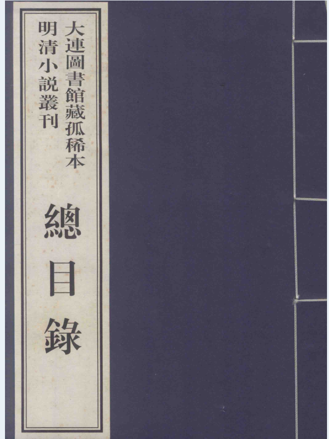 大连图书馆藏明清小说,以其系统、完整和版本精良为国际汉学界所瞩目,大连图书馆也因此成为国际性的研究中国古代小说的资料中心之一。这部分小说,以日本著名的汉学家,西本原寺第二十二代主持大谷光瑞之旧藏为核心。其主要部分,早在清代中叶就已流传到日本,为西本原寺所收藏。后又在民国初年随大谷光瑞回到中国。因而,这部分小说,成为研究中日文化交流的重要文献,具有很高的文物价值。从小说史的角度看,其中的世情小说,填补了自金瓶梅至红楼梦的一百四十年间,中国通俗小说研究资料上的空白。如短篇小说集《云仙啸》,为海内外孤本。《引凤萧》,虽是坊间刻本,亦为大连图书馆仅存。明代崇祯元年所刻的《警世阴阳梦》,更是稀世孤本。另如《珍珠舶》、《后水浒传》,都是该版的仅存者。《世无匹》、《炎凉岸》二书也仅大连图书馆与日本东京大学见藏。有的虽非稀见者,但以原刻本的风采,展示了很高的版本价值,如《鼓掌绝尘》即是。又如该馆所藏之皋鹤堂评批奇书《金瓶梅》,是极为罕见的张评初刻本,较其它刻本多出的二百七十个字,乃迄今所知其它张刻本所无者,具有十分重要的史料价值。张竹坡在总评“寓意说”中,介绍了自己的经历,评点金瓶梅的时间及背景,从而解决了学界多年来争论不休的一些问题。 这批明清小说巨大的文物和资料价值,吸收了海内外的专家学者。每年为此造访大连图书馆者甚多。来函查询有关于小说版本情况者时时有之。为了专家学者研究之方便,亦为了更好地保存这批极其珍贵的文献,我们经过精心策划,隆重地推出《大连图书馆藏孤稀本明清小说丛刊》,以嘉惠学林。为保持原貌,本页刊采用富阳古籍印刷厂特制之宣纸,以影印线装形式出版。冀望本丛刊的出版,为中国古代小说史的研究 ,起到积极的推动作用。本丛刊所收大连图书馆藏明清小说五十五种。主要收录世情小说,兼收少部分其它类目小说,故在排列上以年代为序。本丛刊采用线装的形式影印出版。为保持原书风貌,书中朱批及藏书印等一并保留,并做套红处理。