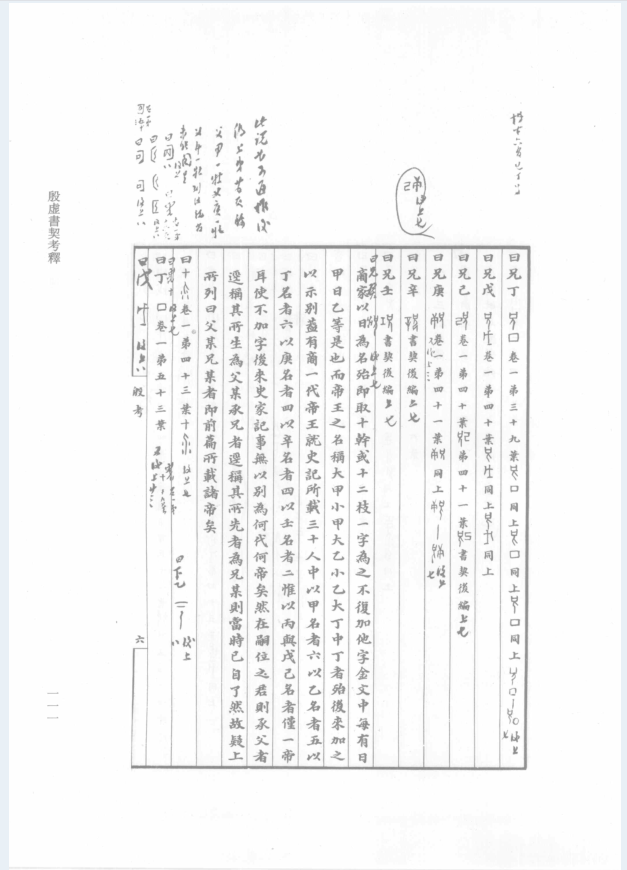罗振玉在甲骨文研究的过程中有三部重要的著作,一是《殷商贞卜文字考》,二是《殷虚书契考释》(初印本),三是《增订殷虚书契考释》。《殷商贞卜文字考》出版后,罗振玉在天眉上做的“补正”,这些“补正”后来都收入了《殷虚书契考释》(初印本)中;初印本出版后,罗振玉在其上所做的“手批校补”,这些“手批校补”后来都融入了《增订殷虚书契考释》一书中。这前后的几部著作的关系,正如陈梦家先生所说的“只是一种的增易”,然而这种“增易”,不仅体现了罗振玉对甲骨文研究地不断深入,同时也从侧面反映了早期甲骨文研究的进展过程,所以我们将《殷商贞卜文字考》“补正”本、《殷虚书契考释》(初印本)“手批校补”本及《增订殷虚书契考释》三书汇集在一起,影印出版,供学界研究,书名取《殷虚书契考释》,因为此书是甲骨学研究领域的奠基之作,有开甲骨文识字之先之誉。