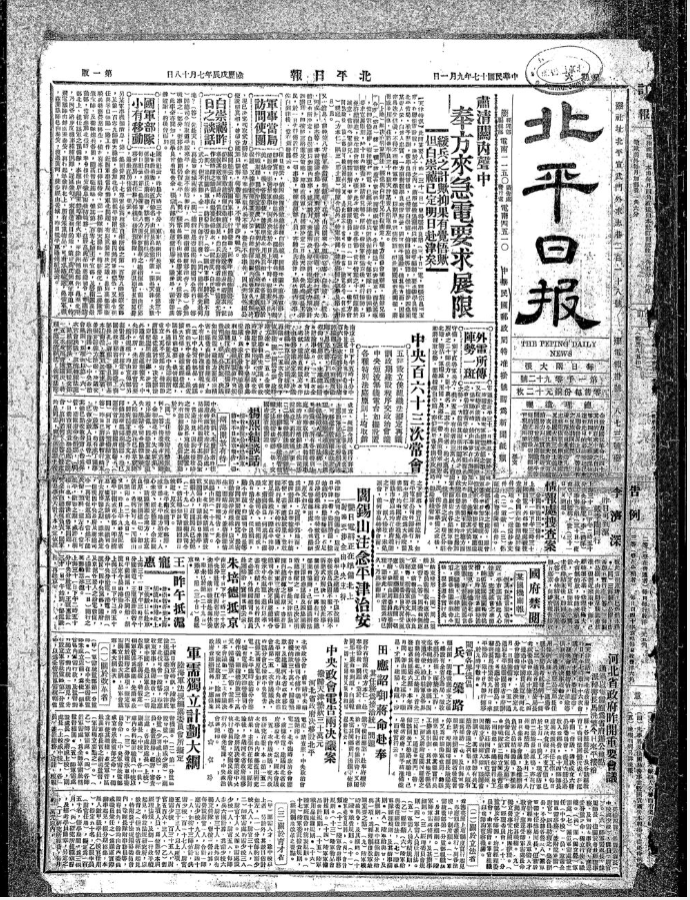1928-1930年间的《北平日报》是民国时期北平地区的重要报纸之一。这一时期正值北平从北洋政府首都转变为南京国民政府特别市的关键阶段,报纸作为舆论工具,在政治、文化领域扮演了重要角色。