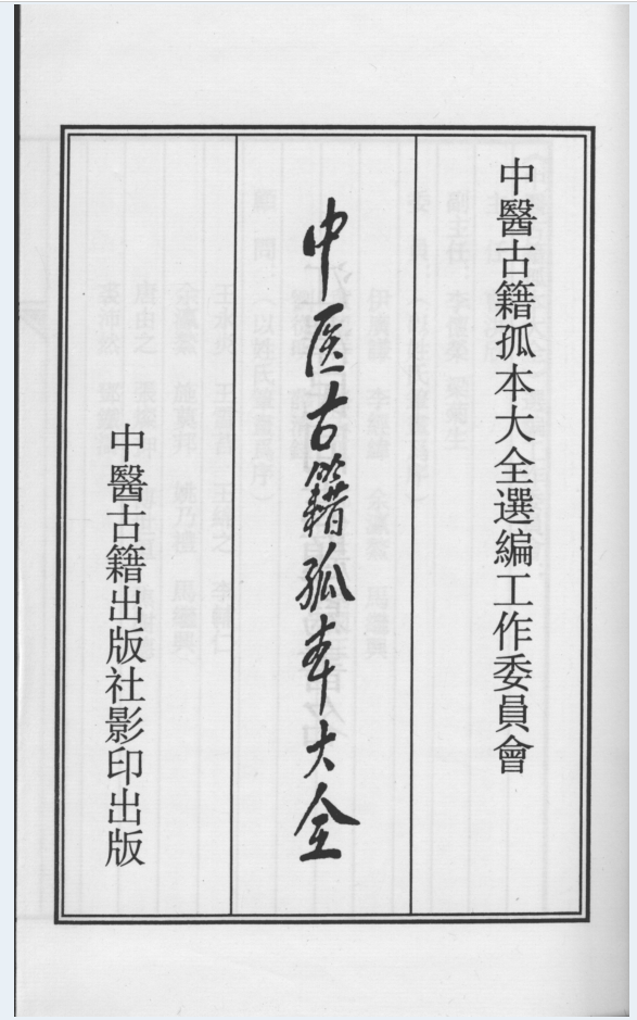 《中医古籍孤本大全》是在科技部和国家中医药管理局领导支持下,由中国中医科学院选编、中医古籍出版社出版的大型系列丛书。该丛书从海内外各大图书馆及私人藏书中选择宋、元、明、清各代刻本、写本、名医手稿、珍籍秘方等孤本300种影印出版。