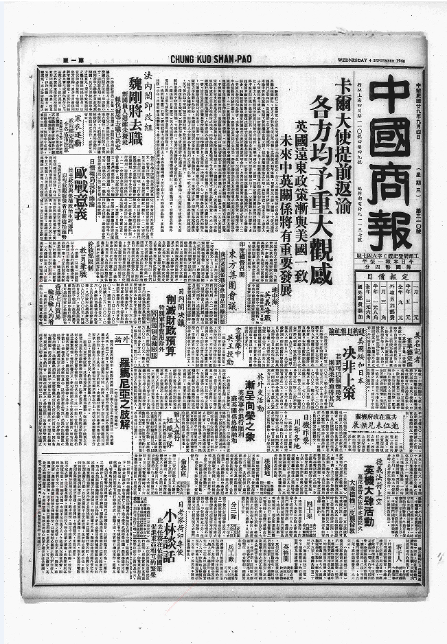 出版时间:上海中国商报社 1939年11月01日至1944年01月31日