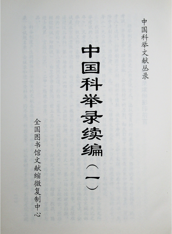 《中国科举录汇编》仅收清雍正前的文献,此续编汇辑了从清乾隆三年至光绪年,共辑录科举录六十种。
